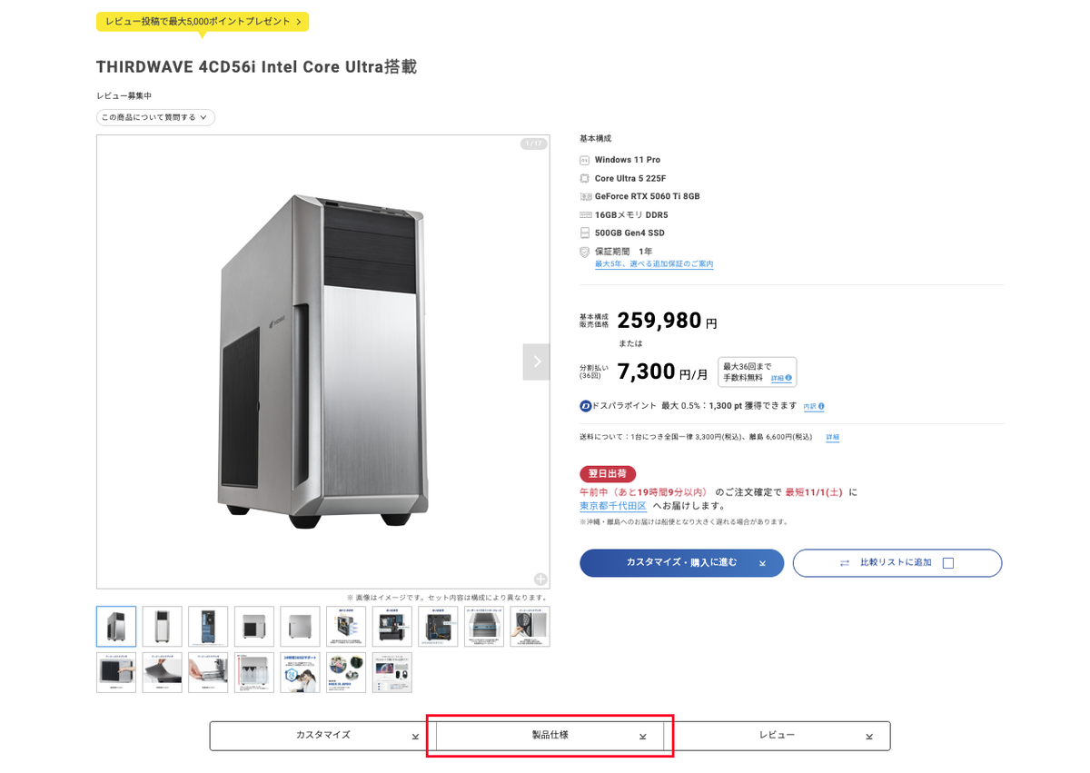 手順① ご希望の製品のページを開きます。