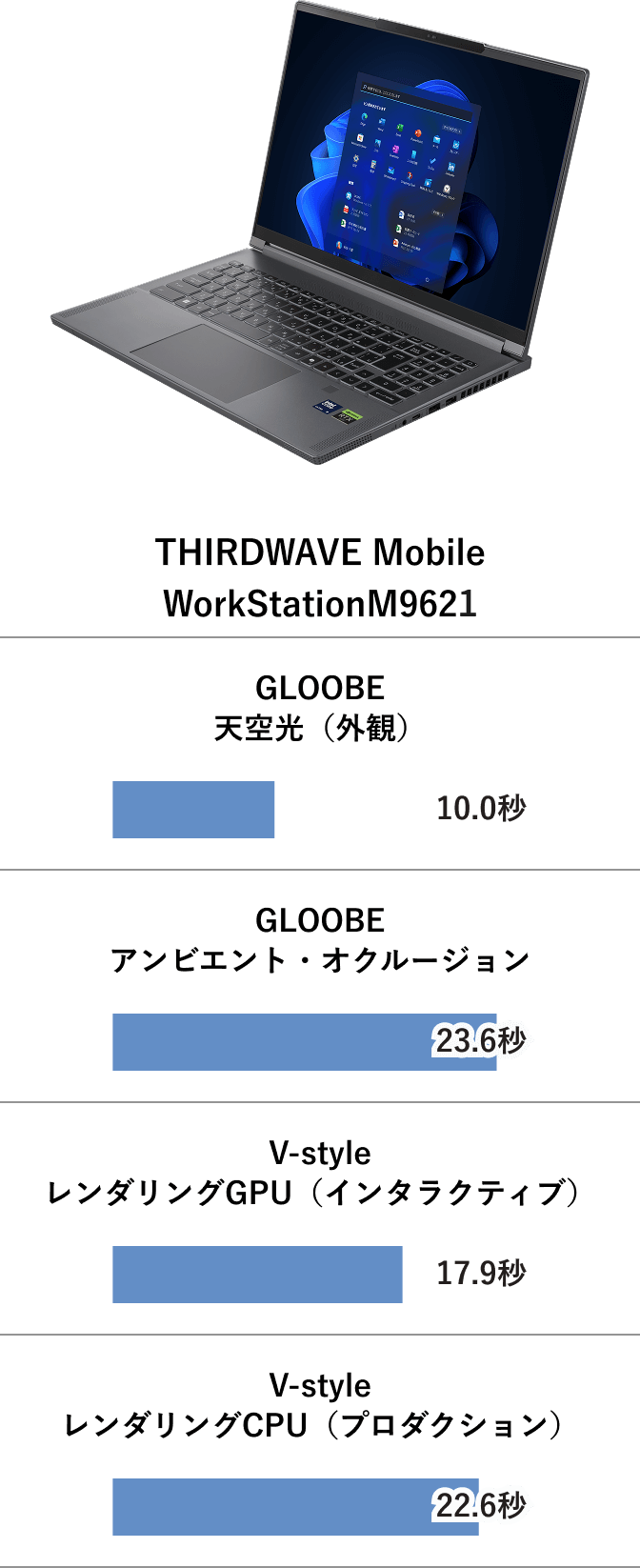 機種は、アッパーミドルレンジCPUとハイエンドモバイルワークステーションを選定し、NVIDIA製グラフィックスボードも搭載のうえ、レンダリング等の処理速度を確認しました。