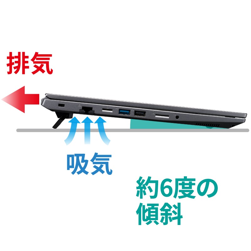 リフトアップスタンドを展開することで底面の通気性を高め、
